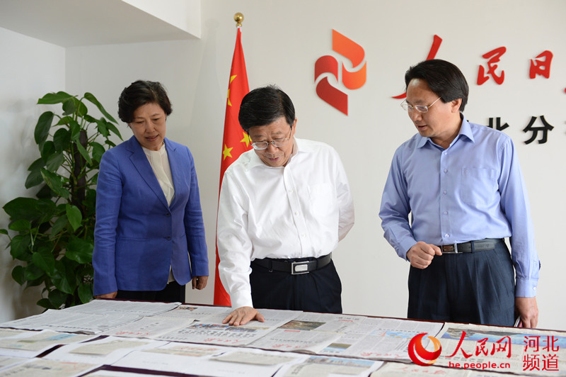 圖為趙克志書記對(duì)人民日?qǐng)?bào)人民網(wǎng)關(guān)于河北的宣傳報(bào)道工作表示肯定。張夢(mèng)琪 攝