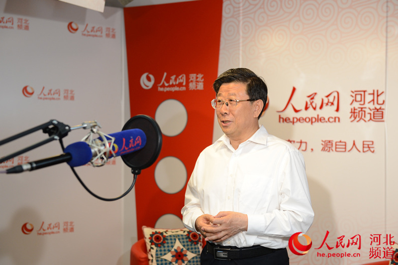 圖為趙克志書記在人民網(wǎng)河北頻道演播室向人民日?qǐng)?bào)讀者和人民網(wǎng)網(wǎng)友問(wèn)好。張夢(mèng)琪 攝