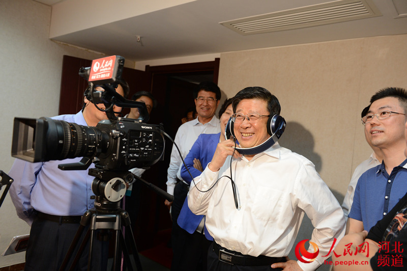 圖為趙克志書記在人民網(wǎng)河北頻道演播室與新媒體記者互動(dòng)交流。張夢(mèng)琪 攝